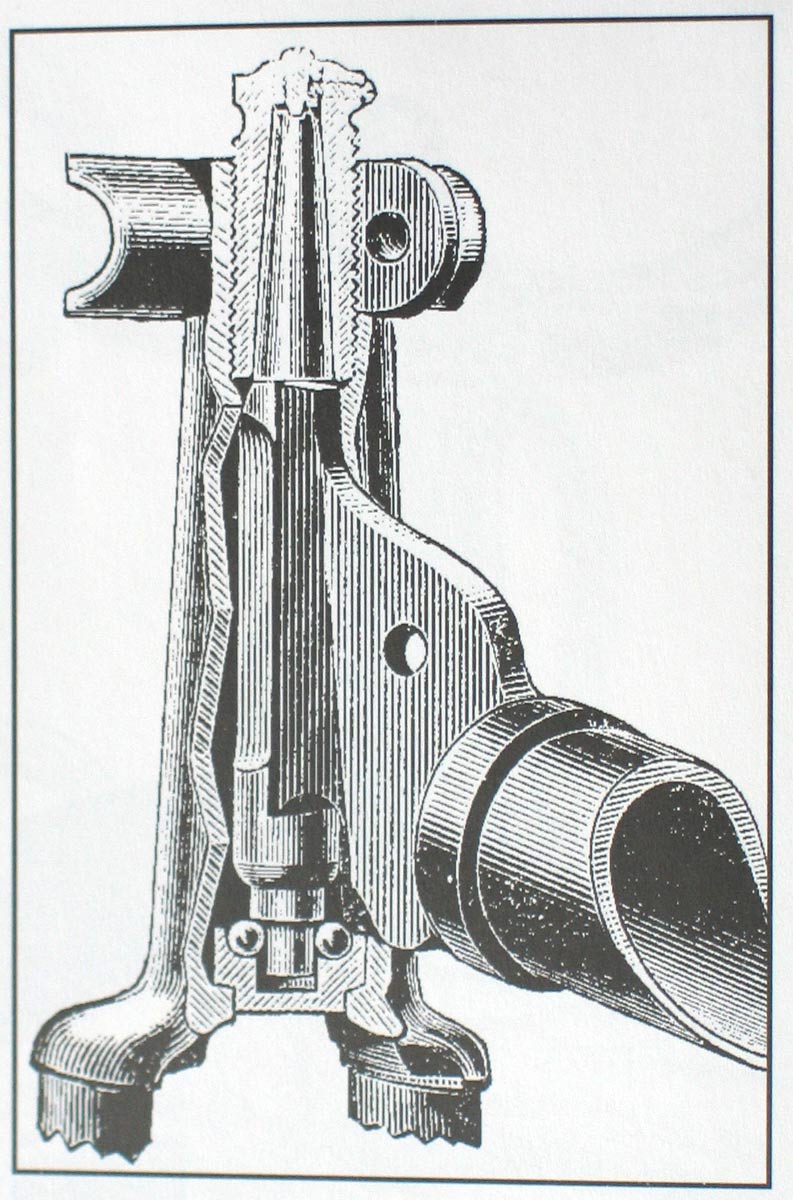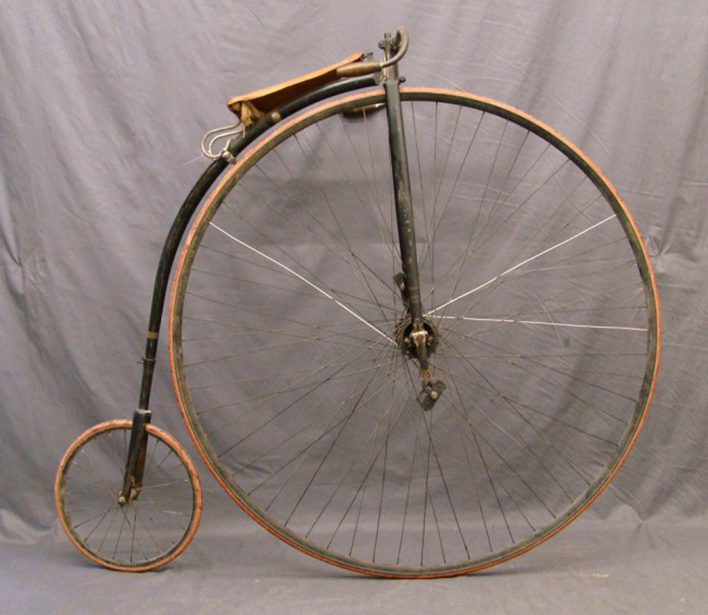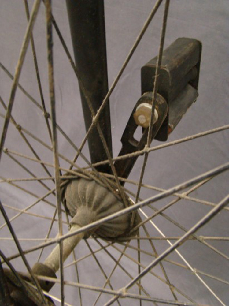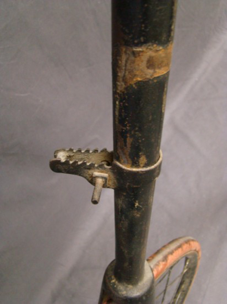 This 54 inch example with Lillybridge Hammock saddle was sold on the Copake auction in New York in 2010. The rear hub is not original. The pedals are ugly remakes an the brake hardware is missing, but it stills shows a very sophisticated bike, with beautifully shaped front hubs and a the (ball bearing) head with patented handlebar clamp. You can't confuse it with any other machine: that's what I call individual character!